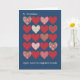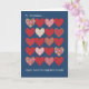 Une carte de vœux chic à personnaliser pour la Saint-Dwynwen (25 janvier) avec des rangées de cœurs rouges et blancs sur fond bleu foncé. Saint-Dwynwen est la sainte patronne des amoureux au Pays de Galles et ce design de la Saint-Dwynwen est issu d'un collage de papier peint à la main par Judy Adamson.