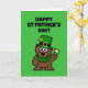 Carte de la Saint Patrick avec leprechaun teddy bear, tissant le drapeau irlandais. Drôle design irlandais orgueil. Cartes de voeux cool pour les vacances. Également disponible en format numérique.