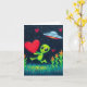 Alien vert adorable avec cœur carte de la Saint-Valentin 4x6. Personnalisable. Texte intérieur "Vous êtes hors de ce monde", "Joyeuse Saint-Valentin"