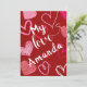 Célébrez l'amour avec cette carte de la Saint-Valentin rouge romantique présentant le message sincère « Mon amour Amanda » sur le devant, entouré de cœurs roses, blancs et rouges fantaisistes. Le design vibrant ajoute une touche de ludicité, ce qui la rend parfaite pour exprimer votre affection. Le verso de la carte comprend un message personnel et votre signature, vous permettant de créer un souvenir inoubliable pour votre être cher.