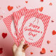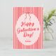 Carte de vœux Galentine's rose rouge avec un nœud dessiné à la main et des bandes à la mode.