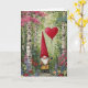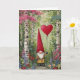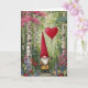 Carte de la Saint-Valentin Gnome-Intérieur Vierge-Personnalisable. Gnome tenant un ballon en forme de cœur rouge dans la forêt.