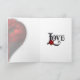 Carte de la Saint-Valentin gothique avec un cœur de sang et une rose ensanglantée sur damas rouge. L'intérieur de cette carte est également décoré.