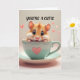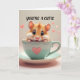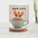 Cette image présente un hamster irrésistiblement mignon et duveteux qui regarde à l'extérieur d'une tasse à thé vert clair, qui a un cœur rose sur le côté. Le hamster a de grands yeux sombres brillants, des joues roses et des pattes roses minuscules, avec une expression heureuse et curieuse. De petits cœurs roses flottent autour de la tasse à thé sur un fond rose clair doux, renforçant le thème doux et adorable.