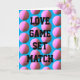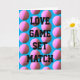 Une carte de la Saint-Valentin ludique pour quelqu'un qui aime le tennis ! Amour, jeu, set, match. Boules de tennis jaunes sur un fond bleu vibrant. Le message à l'intérieur peut être personnalisé avec un nom ou un message de votre choix.