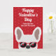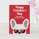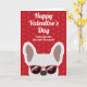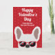 Les Frenchies, envoyez à votre humain une carte de la Saint-Valentin juste de votre part. Le design présente une illustration d'un mignon bouledogue français blanc portant des lunettes de soleil rouges sur fond rouge avec un motif de cœur subtil. Le texte sur le devant indique "Joyeuse Saint-Valentin de la part de celui que vous aimez le plus" mais peut être modifié. Le texte à l'intérieur indique "Je vous aime de tout mon cœur" mais peut également être modifié.