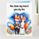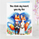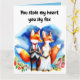 Carte de vœux de Saint-Valentin renard avec couple de mariés renards amoureux et la phrase Tu m'as volé mon cœur, renard rusé