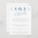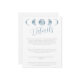 Renforcez le charme céleste de votre papeterie de mariage avec notre carte d'accompagnement de la collection Minimalist Moon Phases Celestial Blue. Ce design présente un fond blanc épuré qui permet aux éléments célestes de briller. Centrés en haut de la carte, les cinq phases de la lune sont représentées dans une belle couleur bleu clair, ajoutant une touche de beauté céleste au design.