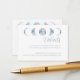 Rehaussez le charme céleste de votre papeterie de mariage avec notre carte d'accompagnement de la collection Minimalist Moon Phases Celestial Blue. Ce design respire la simplicité et l'élégance, avec un fond blanc épuré qui laisse les éléments célestes briller. Au centre du haut de la carte, les cinq phases de la lune sont représentées dans une belle couleur bleu clair, ajoutant une touche de beauté céleste au design.
