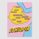 Cette carte visuellement frappante de l'Éthiopie est une fusion de géographie et d'art pop. Des couleurs audacieuses, une imagerie iconique et une typographie ludique se rassemblent pour créer une pièce unique et captivante.