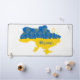 Carte de l'Ukraine décorée de tournesols et d'écriture manuscrite typographie stylisée dans les couleurs du drapeau ukrainien jaune et bleu