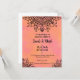 Cette belle carte d'invitation aux fiançailles au design mandala vibrant rose et orange est le design parfait pour vous aider à demander à tous vos proches d'assister à votre cérémonie ou fête de fiançailles. Amusant, fluide, excitant et magique, ce design donne déjà le ton pour les merveilleuses célébrations à venir.