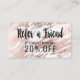 Moderne et fascinant l'or rose imprimé ce par faux et le motif de marbre blanc, se réfèrent un ami que la carte de référence de remise est parfaite pour l'entrepreneur à la mode et élégant. Cette carte de regard à la mode et professionnelle est la manière parfaite de montrer vos clients que vous vous inquiétez de leurs affaires. Customisez cette carte pour n'importe quelles affaires, juste éditez le texte et ajoutez vos propres détails personnels.