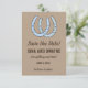 Cartes d'invitation de mariage personnalisées de style cowboy occidental à fer à cheval bleu.