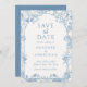 Carte de mariage à fleurs bleu poussiéreux pour annoncer la date