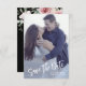 Carte de mariage à l'aquarelle avec photo Black Pink à conserver, avec des caractéristiques d'eucalyptus floral aquarelle noir et rose. De belles grandes fleurs roses, blanches et beige. C'est la carte parfaite pour toutes les saisons en raison de son élégance et de son style. Entièrement personnalisable, ajoutez votre propre photo et texte. Élégant. Intemporel. Romantique. Recherchez des produits assortis dans cette collection.