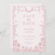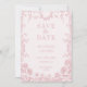 Carte de mariage à save the date en bleu poussiéreux avec fleurs roses