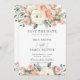 Cette carte de mariage à save the date chic présente une belle composition florale aquarelle ivoire, pêche et rose. Conçue pour correspondre à notre collection de mariage Luxe. Personnalisez-la facilement et rapidement avec vos détails, il suffit d'appuyer sur le bouton personnaliser pour réorganiser et formater le style et l'emplacement du texte. (c) The Happy Cat Studio