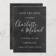Avec les noms de style signature, cette élégante carte de date à retenir sur tableau noir peut être personnalisée avec les informations de votre jour de mariage spécial en lettrage blanc chic. Conçue par Thisisnotme©