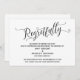 La distinction de cette suite est due à la police de caractères élaborée et tourbillonnante utilisée pour les phrases d'accentuation. Dans le cas où vous auriez besoin de faire savoir à vos invités que votre mariage a été annulé, cette carte offre une option élégante. Dans ce modèle, la police de calligraphie a été utilisée pour créer un graphique représentant le mot "Regretfully". Utilisez les champs de modèle pour ajouter vos informations personnelles et faire de ce design le vôtre. L'arrière-plan peut être changé en n'importe quelle couleur de votre choix. N'hésitez pas à nous contacter pour toute demande spéciale ou pour une aide à la personnalisation. // 98 //