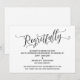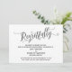 La distinction de cette suite est due à la police de caractères élaborée et tourbillonnante utilisée pour les phrases d'accentuation. Dans le cas où vous auriez besoin d'informer vos invités que votre mariage a été annulé, cette carte offre une option élégante. Dans ce modèle, la police de calligraphie a été utilisée pour créer un graphique représentant le mot "Regretfully". Utilisez les champs du modèle pour ajouter vos informations personnelles et personnaliser ce design. La couleur de fond peut être modifiée selon vos préférences. N'hésitez pas à nous contacter pour toute demande spéciale ou pour une aide à la personnalisation. // 98 //