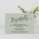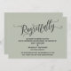 La distinction de cette suite est due à la police de caractères élaborée et tourbillonnante utilisée pour les phrases d'accentuation. Dans le cas où vous auriez besoin de faire savoir à vos invités que votre mariage a été annulé, cette carte offre une option élégante. Dans ce modèle, la police de calligraphie a été utilisée pour créer un graphique représentant le mot "Regretfully". Utilisez les champs de modèle pour ajouter vos informations personnelles et faire de ce design le vôtre. Le fond simple et uni peut être changé en n'importe quelle couleur de votre choix. N'hésitez pas à nous contacter pour toute demande spéciale ou pour une aide à la personnalisation. // 98 //