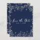 Carte postale de mariage botanique bleue et argentée à conserver pour la date. Personnalisez avec le texte de votre choix.