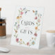Panneau de mariage champêtre sur présentoir pour cartes et cadeaux. Ce design présente un délicat bouquet de fleurs sauvages peintes à la main et de verdure, accompagné d'une combinaison charmante de polices modernes et rustiques. Découvrez l'ensemble de la collection pour plus d'articles assortis !
