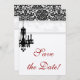 Élégante carte de mariage pour annoncer la date avec un beau motif de damas de lustre. Pour voir toute cette gamme, tapez simplement chandelierbw dans le champ de recherche.