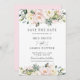 Cette carte de mariage chic pour annoncer la date présente une belle composition florale aquarelle rose et ivoire. Conçue pour correspondre à notre collection de mariage Romantic Blooms. Personnalisez-la facilement et rapidement avec vos informations, il suffit d'appuyer sur le bouton personnaliser pour réorganiser et formater le style et l'emplacement du texte. (c) The Happy Cat Studio