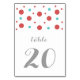 Carte Confetti Mariage avec des points de confetti amusants en rouge et turquoise. Cette carte de table simple et moderne peut être facilement customisée avec vos informations de mariage. Pour plus d'options de personnalisation, cliquez sur Customiser.