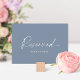Gardez vos sièges mariages organisés en style avec cette carte de table minimaliste bleue poussiéreuse réservée. Doté d'une élégante typographie sur un arrière - plan bleu doux, cette carte est parfaite pour marquer des sièges VIP ou de famille à votre cérémonie ou réception. Un ajout moderne et polyvalent à tout thème mariage.