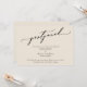 Si vos plans de mariage ont inévitablement changé, cette carte simple et élégante pourrait être l'option parfaite pour vous. Avec une police de calligraphie luxueuse, l'en-tête indique "reporté". Tout le reste est polyvalent et peut être modifié : l'arrière-plan peut être changé en n'importe quelle couleur que vous préférez, ou vous pouvez ajouter votre propre image d'arrière-plan comme bon vous semble. Utilisez les champs de modèle pour ajouter vos informations personnelles. // 137 //