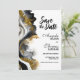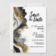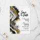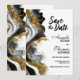 Informez vos amis et vos proches de votre futur mariage avec cette élégante carte de rappel moderne en noir et or en marbre d'agate. (Aucune brillance réelle n'a été utilisée dans cette invitation.)