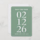 Cartes de mariage fantaisistes vert sauge Save the Date. Décorations et invitations de mariage en plein air organiques sur le thème de la terre cuite brûlée orange ou vert sauge.