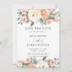 Cette carte chic de mariage à conserver présente une belle composition florale aquarelle ivoire, pêche et rose. Conçue pour correspondre à notre collection de mariage Luxe. Personnalisez-la facilement et rapidement avec vos informations, il suffit d'appuyer sur le bouton Personnaliser pour réorganiser et formater le style et l'emplacement du texte. (c) The Happy Cat Studio