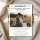 Partagez votre histoire d'amour avec un charme intemporel et une élégance rustique. Cette carte d'annonce de date de style journalistique capture votre romance avec une photo personnelle et une mise en page d'inspiration vintage qui se sent nostalgique et unique. Que vous planifiez un mariage décontracté à Las Vegas ou une célébration à la campagne, cette carte éditable offre un moyen sincère et abordable de laisser vos invités partager le début de votre pour toujours.