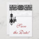 Élégante carte de sauvegarde de date de mariage avec un beau motif damassé de lustre. Pour voir toute cette ligne, tapez simplement chandelierbw dans le champ de recherche.