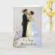 Élégante carte de mariage, avec une mariée et un marié romantiques sur le dessus du gâteau de mariage, et le texte "Le jour de votre mariage". Personnalisez le texte pour répondre à vos besoins.