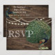 Carte de mariage Paon à Plume de Teal en Bois Rustique