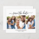 Cartes de mariage à 3 photos avec calligraphie simple et élégante "Save The Date" en noir et blanc. Ce design exquisément délicat est conçu précisément pour les mariages contemporains, dégageant un charme romantique enchanteur. Mettant en valeur un collage en grille de 3 photos gracieux et une calligraphie fantaisiste dans une police à empattements manuscrits, ces cartes symbolisent l'élégance moderne. Personnalisez-les sans effort avec vos détails de mariage et photos précieux, offrant une touche abordable mais raffinée pour annoncer votre jour spécial.