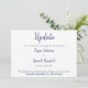 Voici une carte simple pour avertir vos invités s'il est nécessaire de changer votre date de mariage. Utilisez les champs modèles pour ajouter vos données personnelles et faire de ce design simple et polyvalent votre propre. L'arrière - plan peut être changé en n'importe quelle couleur. Toutes les polices et couleurs sont également modifiables. Veuillez communiquer avec toute demande spéciale ou customiser de l'aide. D'autres pièces avec un autre libellé sont disponibles dans la collection.