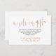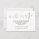 Rêveur rencontre rustique avec cette carte de mariage en rose gold. Ajoutez votre propre texte dans le modèle sur le devant et/ou le dos. Pour personnaliser, ajoutez simplement votre texte dans le modèle ou sélectionnez 'personnaliser davantage' pour déplacer le texte. Cartes assorties disponibles.