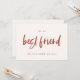 Une carte-cadeau simple et minimaliste pour écrire un message personnel et sincère à votre meilleure amie le jour de son mariage. Entièrement personnalisable avec vos couleurs préférées. Vous pouvez ajouter un message au verso, ou le laisser vide si vous préférez écrire votre message à la main plus tard.