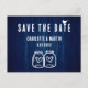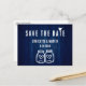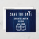 Carte postale de mariage rustique minimaliste avec calligraphie moderne idéale pour un mariage champêtre/barn/backyard rustique bleu marine.