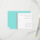 Cartes de mariage RSVP en gris fusain élégant et contemporain, bleu aqua turquoise, vert menthe clair et blanc rétro et cercles décontractés et diamants motif géométrique. Personnalisable avec les détails de votre mariage, disponible dans de nombreux produits mariages correspondants.