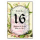 Carte vintage Floral Rose Mariage Numéro de table. Texte de police de script anglais ancien. Par BlissfulWedding © à Zazzle.