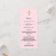 Baptême, carte de menu de réception à baptême. Personnalisez et ajoutez un nom, une date et le menu. Un arrière - plan pastel rose clair et une croix dorée.