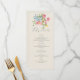 Ajoutez une touche romantique et fraîche à votre réception avec ce menu de mariage de printemps élégant. Décoré de fleurs sauvages d'aquarelle douce dans les tons rose pastel, jaune, bleu et vert, ce modèle de menu vertical s'ajoute parfaitement aux mariages de jardin printanier, rustique et boho. Listez vos délicieux entrées, plats et desserts dans un agencement élégant et facile à lire que vos invités apprécieront.