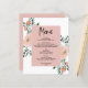 Cette carte à petit prix romantique à la pêche à la carte est une belle et abordable façon d'ajouter de l'élégance à votre événement. Doté de fleurs douces aux tons pêche et d'une végétation délicate, il crée une atmosphère chaleureuse et accueillante, idéale pour les mariages, les douches nuptiales ou les réunions intimes. La palette de couleurs douces et le design gracieux offrent une touche romantique sans compromettre le style. Imprimée sur un carton de qualité, cette carte de menu est à la fois charmant et pratique, vous aidant à guider vos invités à travers le repas tout en complétant votre décor global.